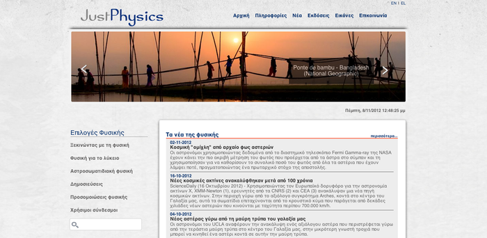Using the new powerful Content Management System Apogee Essence, Apogee Information Systems, completed the JustPhysics project and launced it in the 16th of July 2012. The CMS is developed in such a way so that it may apply to all needs and function in the best way to all students and scients. Apogee CMS allows easy management, maintenancce and renewal of all websites or portals.