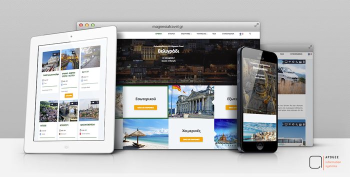 Apogee Information Systems completed the implementation of the website for the new tourism company Magnesia Travel of Public Road Transport in Magnesia. The Magnesia Travel website is based on the content management platform Apogee Essence CMS, which allows dynamic management of the website and user-friendly features, such as extensions, modifications and deletions of texts, pictures, updates etc.