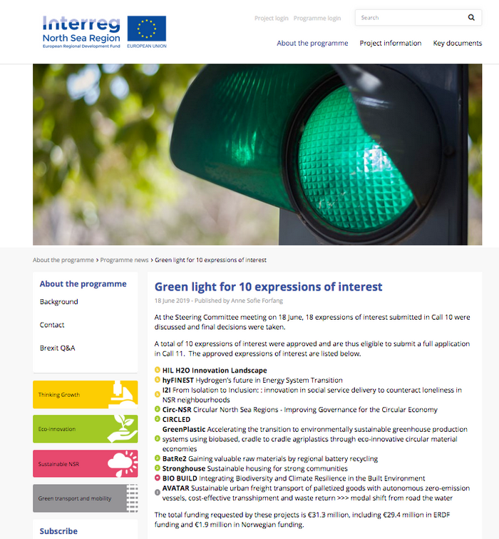 2019 Has been one more year of our OMS (Online Monitoring System) supporting the work of the North Sea Region Progreamme. Three separate calls led to the approval of 8 new projects in Call 9, 10 expressions of interest in Call 10, and five more projects among 9 full applications submitted in Call 11.