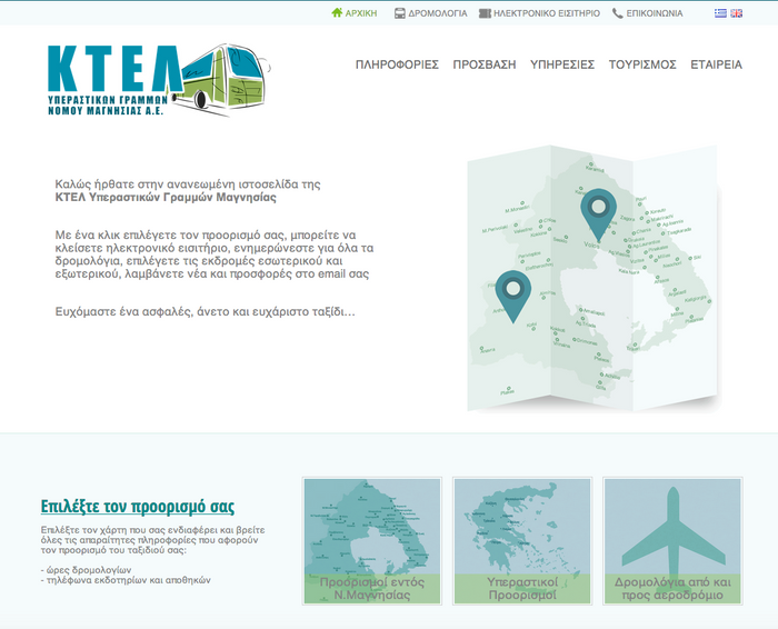 Apogee Information Systems completed the update of the website of ktelvolou.gr, the website of the Magnesia transportation and travel agency, which Apogee supports since 2013. The website is based on the content management platform Apogee Essence CMS, which allows dynamic management of the website and user-friendly features, such as extensions, modifications and deletions of texts, pictures, updates, etc.